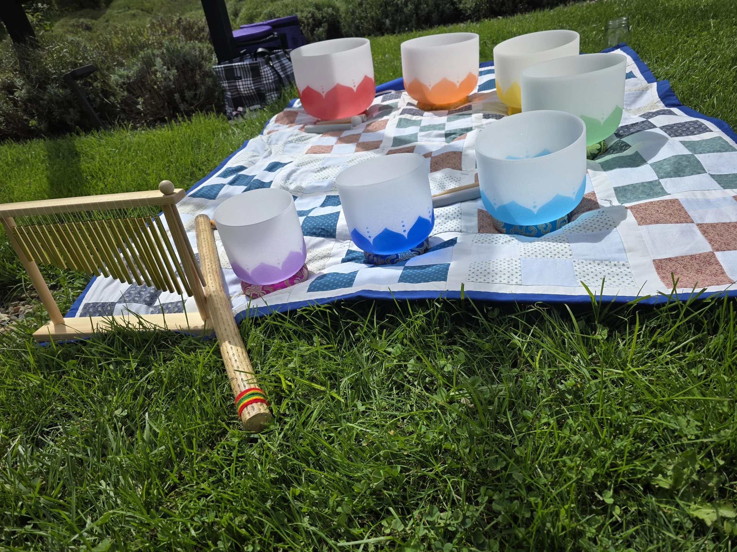 Using crystal singing bowls, rainsticks, and chimes, the sound creates gentle, sustained vibrations that support relaxation, grounding, and a sense of ease in the body.